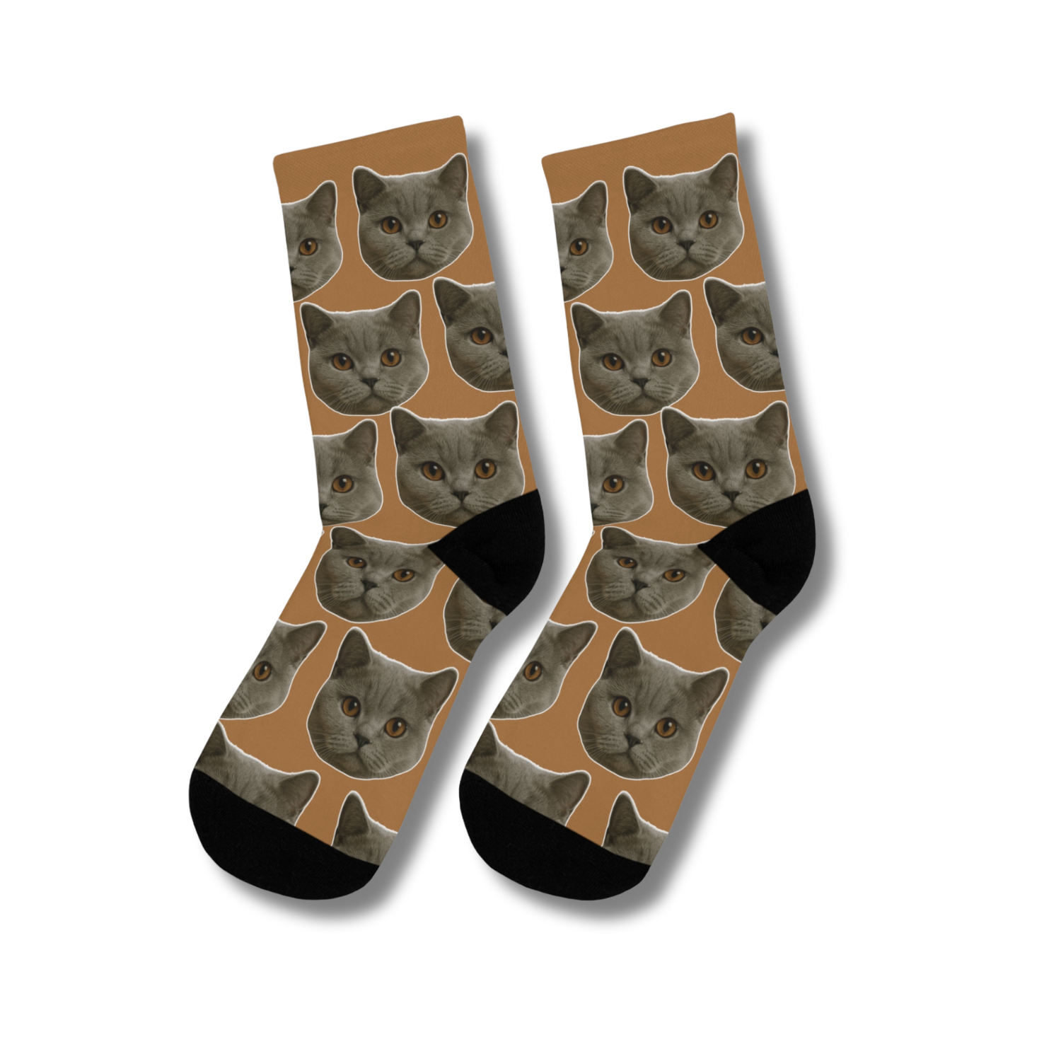Upload the image, and we’ll automatically remove the background. Then, choose your sock color and background design.